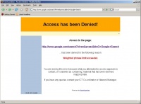 DansGuardian akan membaca text Web yang di akses. Jika ada kata-kata yang tidak pantas, akan terblokir seperti tampak pada gambar.