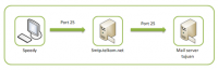 - Speedy (mail client) tidak dapat melakukan pengiriman mail menggunakan port 25 (SMTP) ke mail server milik pelanggan sendiri.
