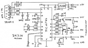 The circuit presented here could generate an APRS signal with very little effort. Starting point was the TinyTrak from Byonics, where all functions are done with a microcontroller. The position data in NMEA format ( $GPRMC ) delivered from a GPS receiver is decoded and a 1200 bps packet radio signal is generated from it. This can be fed directly into a transmitter without the need of a TNC. Because of the simple circuit a decoding of received APRS signals is not possible.
