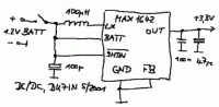 The DC/DC convertor was built with a Maxim MAX1642. With a 1800mAh NiMH accu this circuit will run for about 150 hours.
